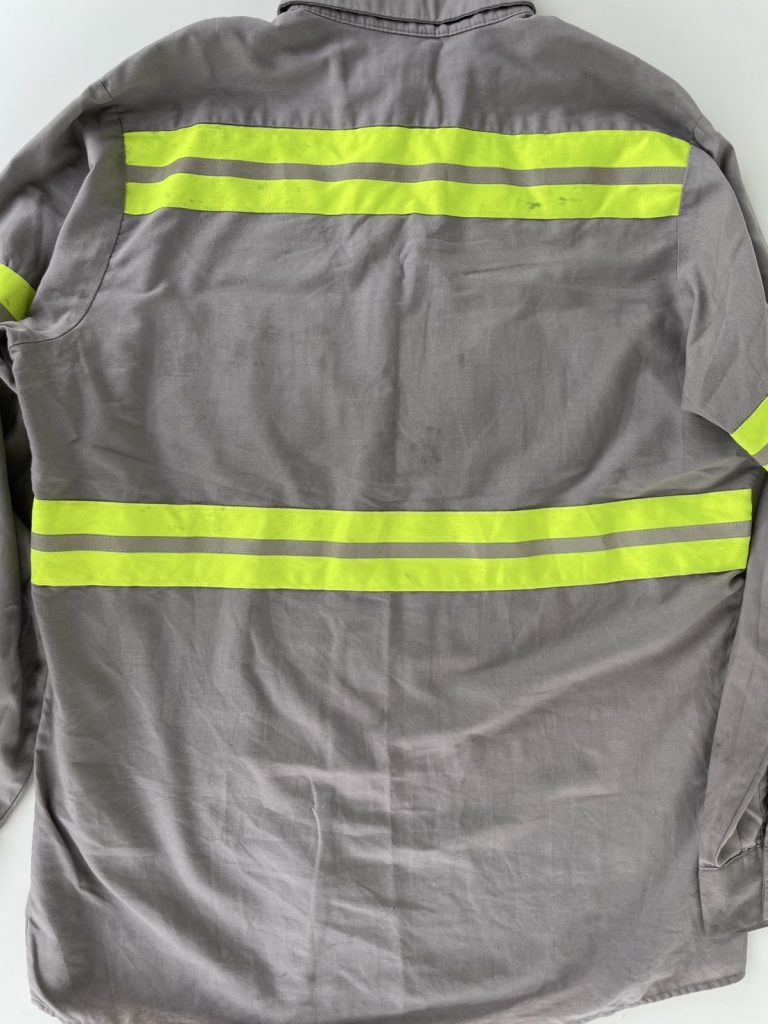 一見すると大きな汚れは目立ちませんが、実際には全体に細かい頑固な汚れや黒ずみが点在していました。家庭洗濯では落としきれないレベルのものです。