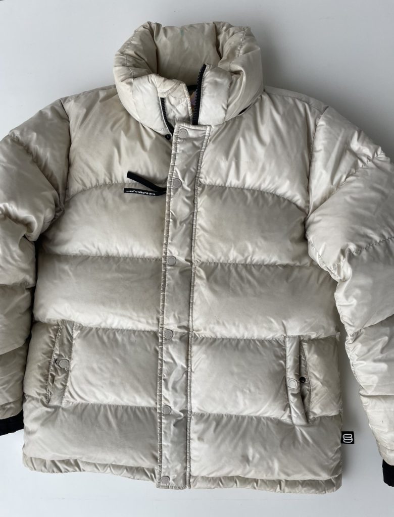今回お預かりしたダウンは、広範囲に黒ずみが目立ち、清潔感が損なわれている状態でした。
