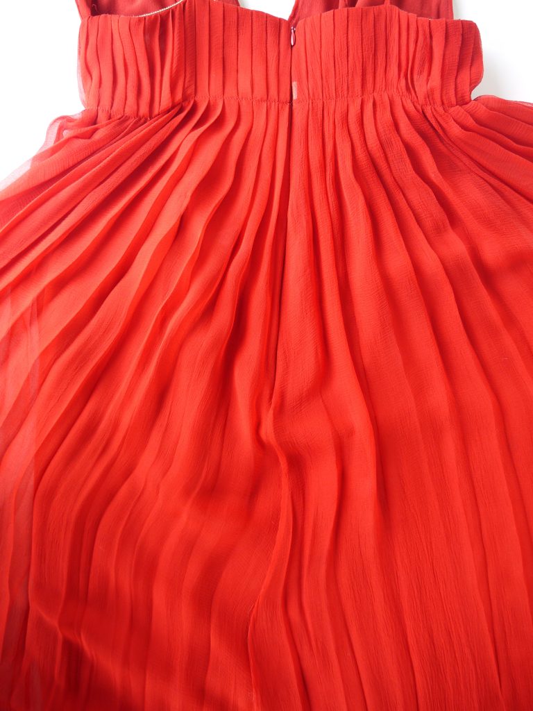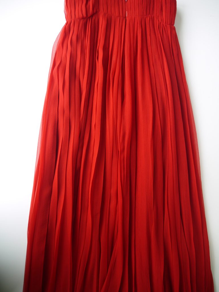 さらにこのドレスは、繊細なプリーツ加工(ヒダ)が施されており、通常のクリーニングでは形が崩れてしまうリスクが高い一着でした。