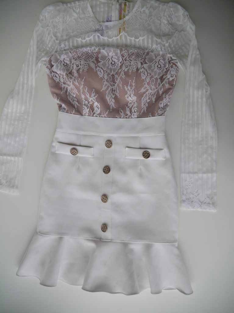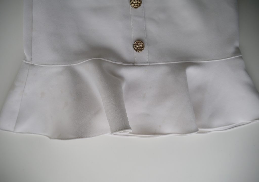 今回は以下のドレスの依頼を承りました。スカートのひらひらとした部分がに黒い汚れが目立ちます。