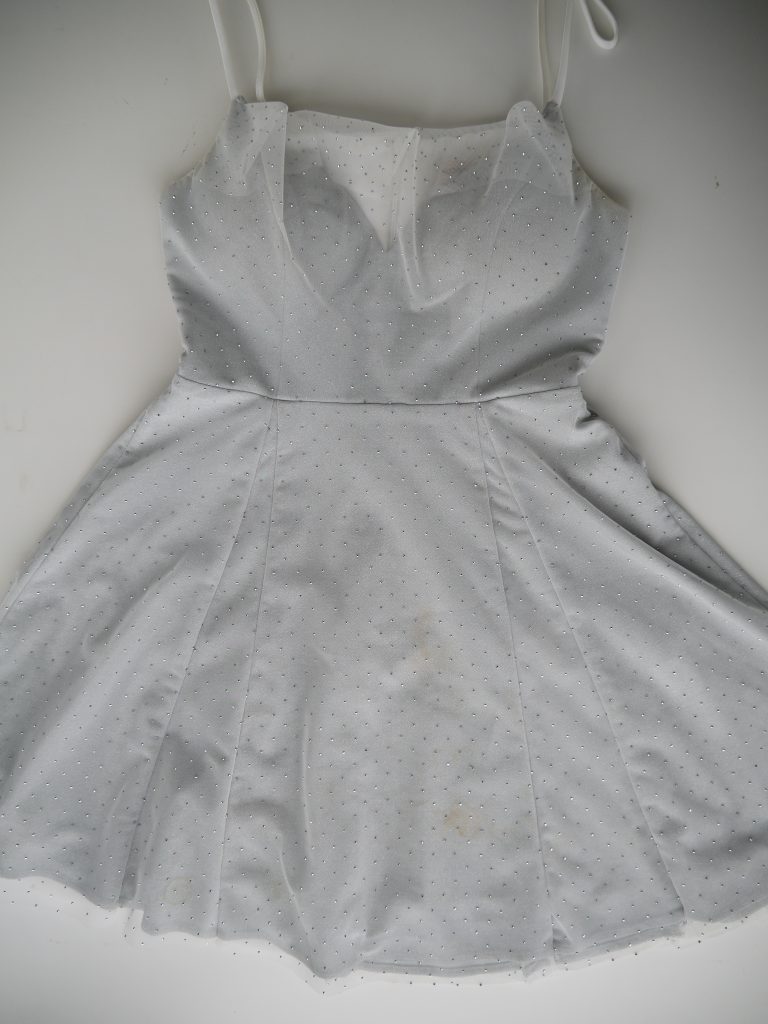 ご覧いただける通り、スカート全体を覆っていたシミ汚れは見事に解消。美しいワンピースへとよみがえりました。