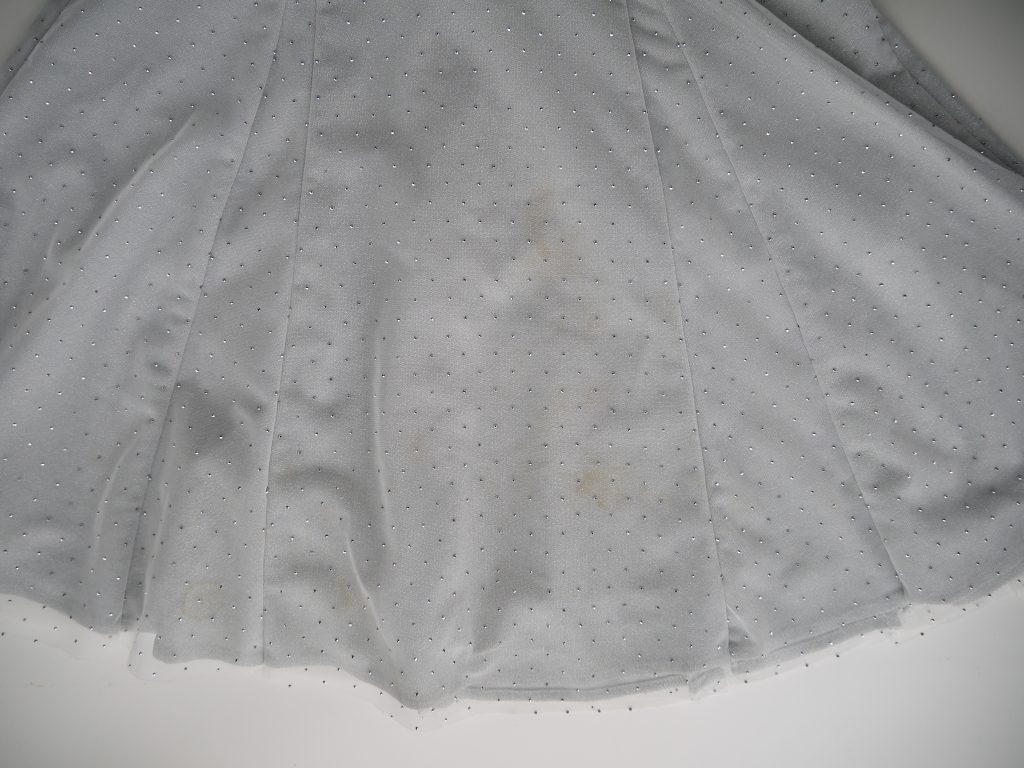 今回は接客用フォーマルドレスの実例紹介です。スカート部分を中心に、大きなシミや多数見受けられ、清潔感が失われつつある状態でした。