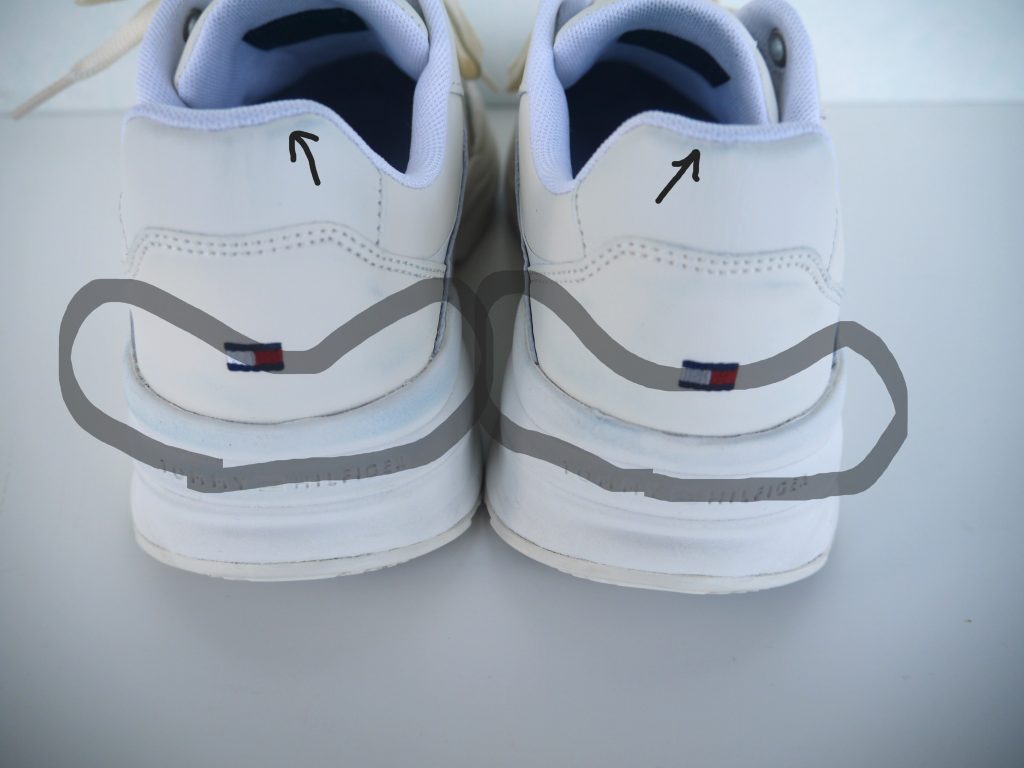 少しわかりずらいので印をつけました。新しい靴のため、移染汚れが気になってしまいます。